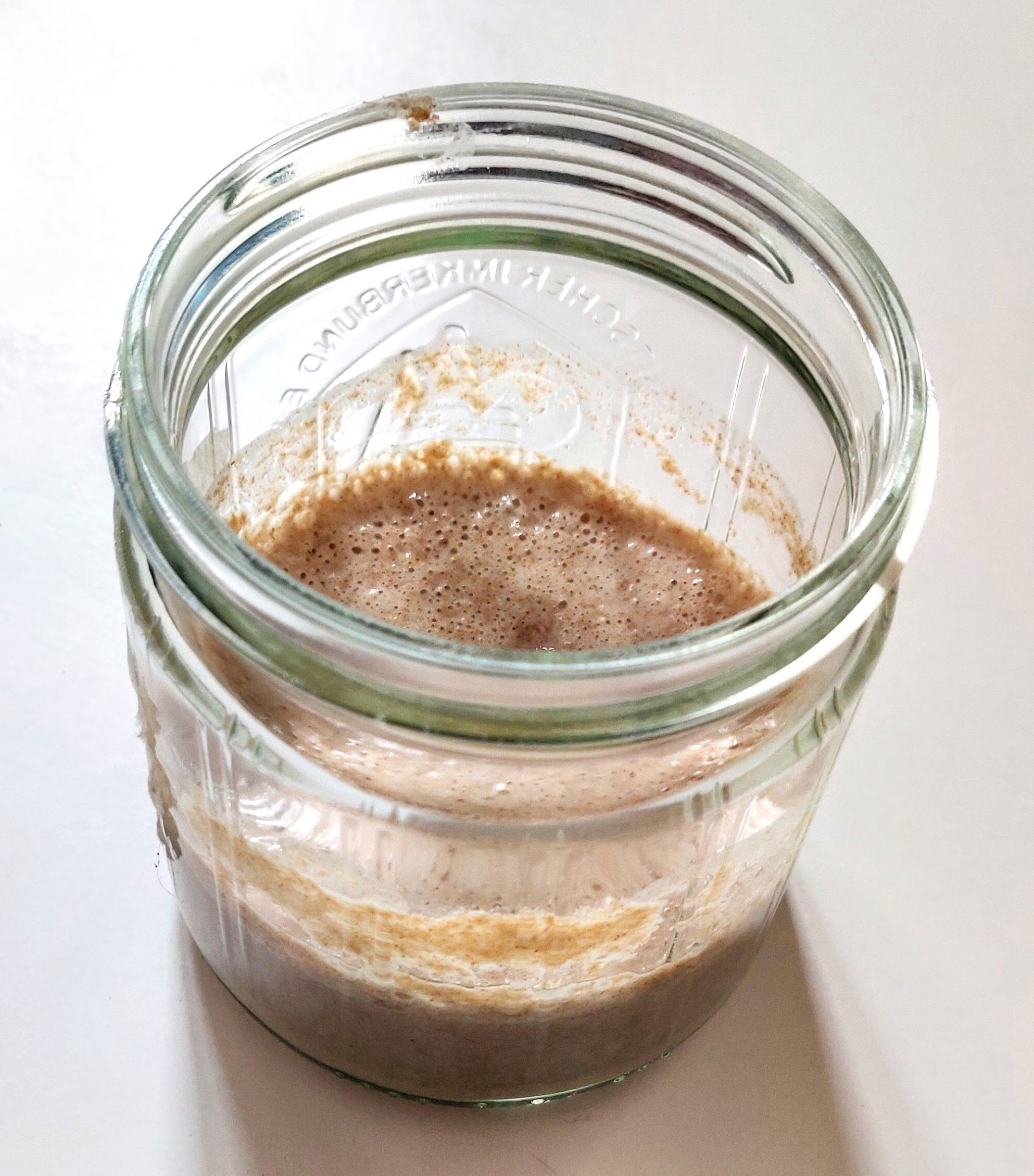 Der klassische Sauerteig. Ich bin unsicher wo der metallische Geschmack herkommt. Alle drei Ansätze wurden in den gleichen sterilisierten Gläsern gemacht, daher kann darüber eigentlich keine Verunreinigung kommen.